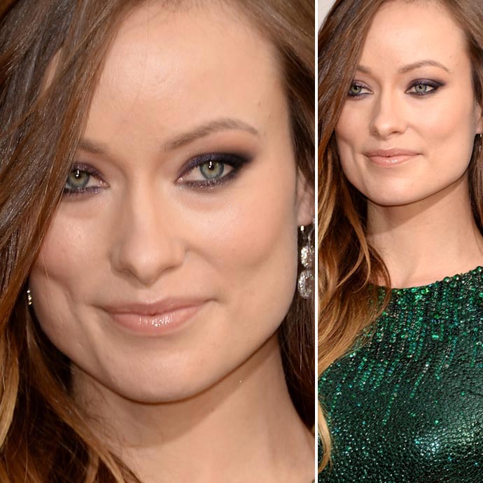 Olivia Wilde combinou o vestido verde com um olho que mixou marrom, preto e um pouco de roxo. Ótima escolha! Verde e roxo se complementam demais e a combinação não fica óbvia.