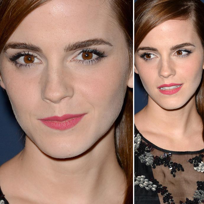 Emma Watson anda super basiquete no make. No Globo de Ouro só rolou uma boca opaca rosa avermelhada e nos olhos um delineador com pálpebra clarinha. Sinto falta daquele drama, hehe!