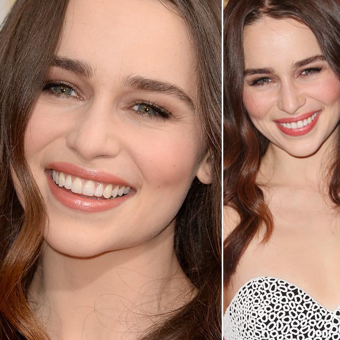 Por fim a nossa linda Emilia Clarke, super bonequinha com boca pêssego, blush rosa queimado e olhos com dourado ouro velho e marrom.